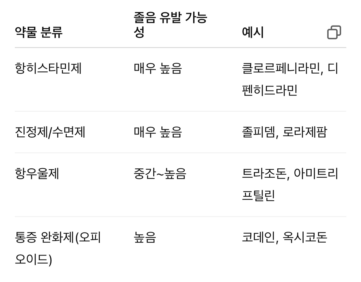 - 다른 약과의 상호작용: 여러 약을 동시에 복용하면 졸림이 더 심해질 수 있음