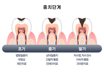 충치가 더 진행되면, 상아질을 넘어 치수(pulp)에까지 도달하여 치수염(pulpitis)이 발생합니다. 이 상태에서는 치아 내부의 신경에 염증이 생겨 심한 통증이 발생할 수 있습니다. 통증은 지속적이거나, 특히 뜨겁거나 차가운 음식에 의해 유발될 수 있습니다.