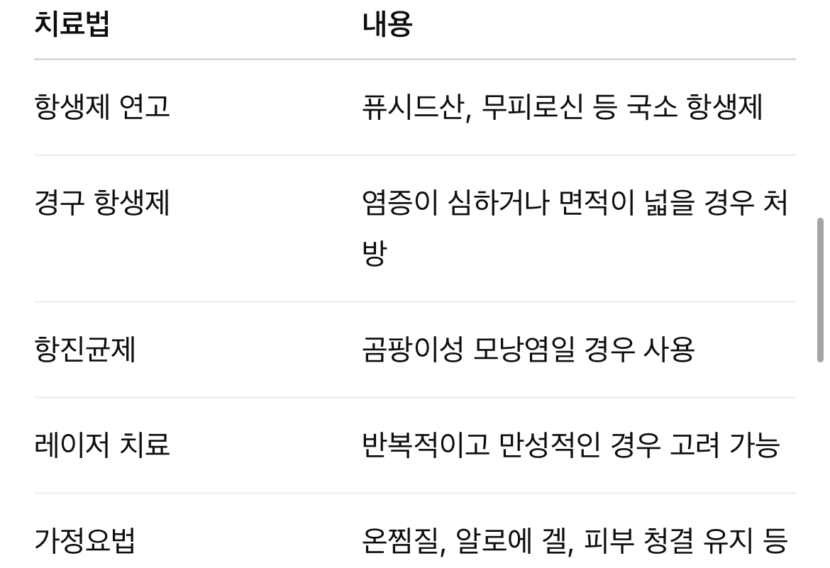 모낭염은 자주 발생할 수 있지만, 조기에 관리하고 적절한 치료를 받으면 큰 문제가 되지 않습니다. 위에서 소개한 원인, 예방법, 치료법을 잘 기억해 두면 건강한 피부를 유지하는 데 큰 도움이 될 거예요.