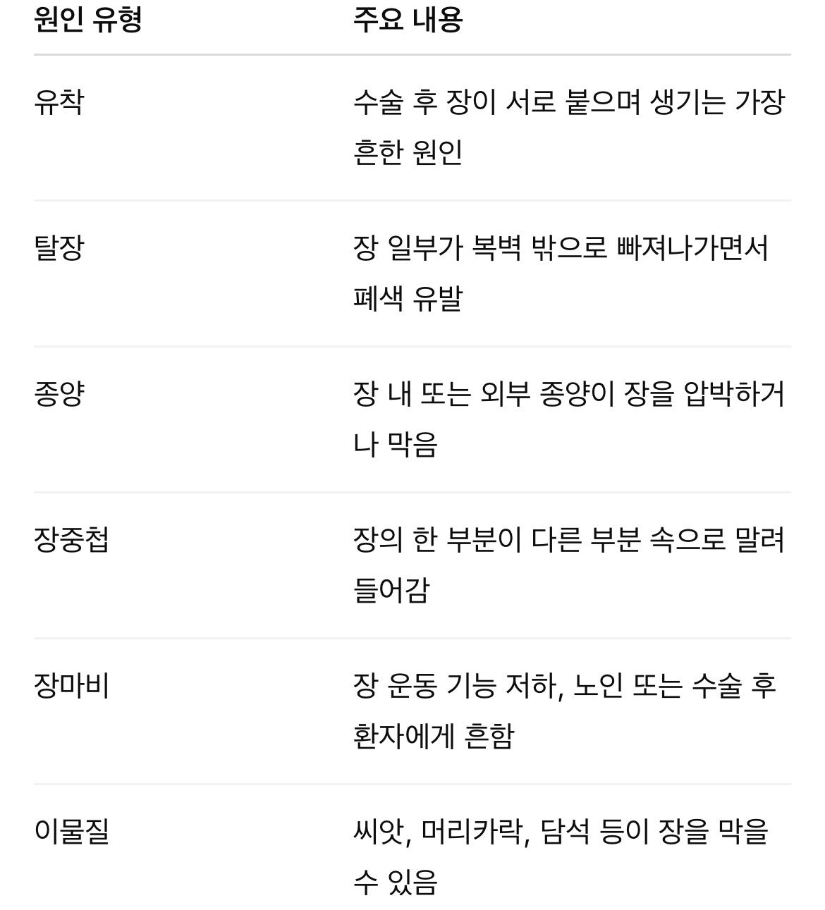 장폐색은 단순한 소화불량과 구분하기 어렵지만, 증상이 지속되거나 심해진다면 지체 없이 병원을 방문해야 합니다. 특히 고령자, 수술 병력이 있는 분들은 더 주의가 필요합니다.