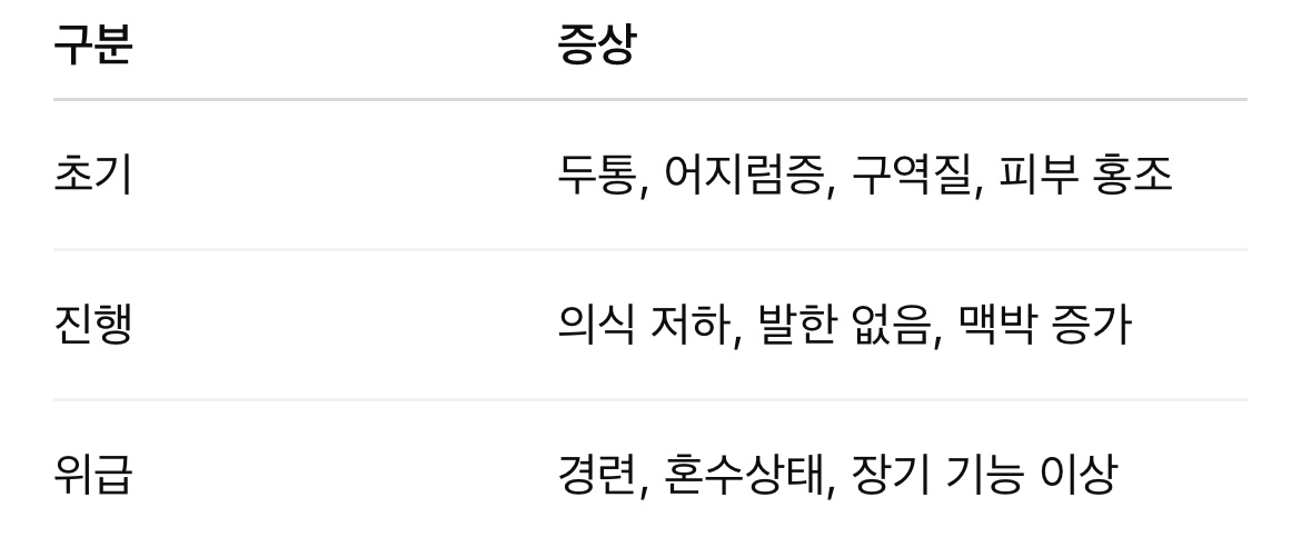 👉 특히 발한이 멈추고 피부가 뜨겁고 건조하다면 열사병을 강력히 의심해야 합니다.